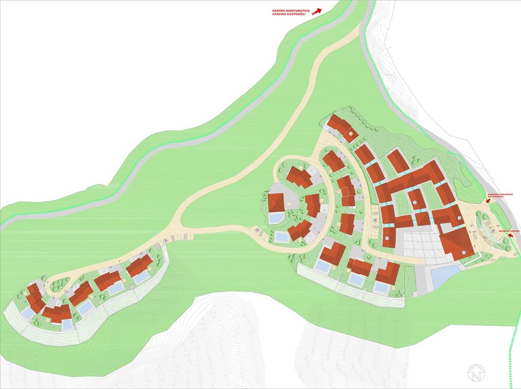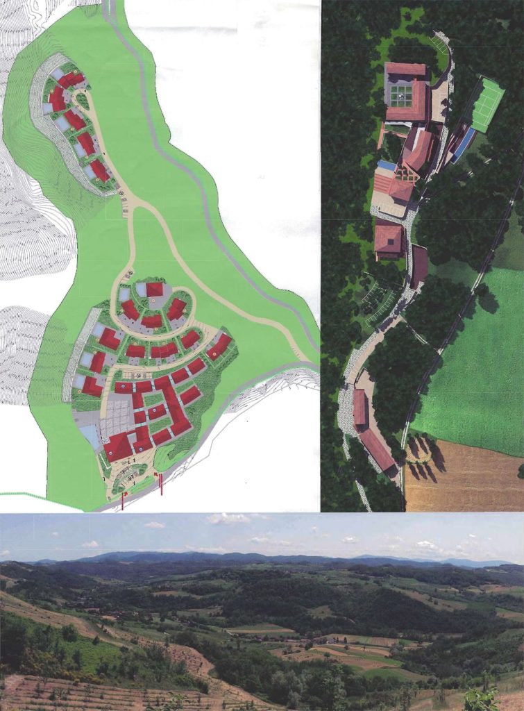 Progetto di un Centro Agri-Turistico composto da un “Country Resort”, un nucleo agricolo, un nucleo di ristorazione, impianti sportivi e progetto di un Insediamento Turistico-Residenziale di 9000 mq di SLP posti sulle prime colline dell’Oltrepo Pavese.